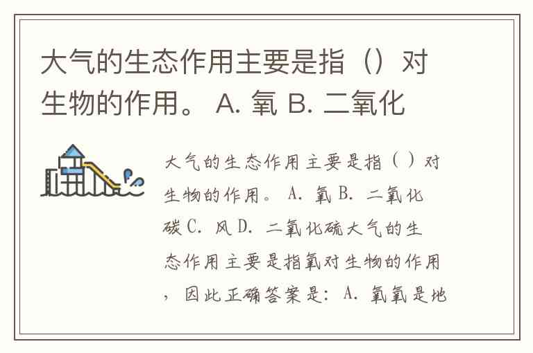 大气的生态作用主要是指()对生物的作用。 A. 氧 B. 二氧化碳 C. 风 D. 二氧化硫