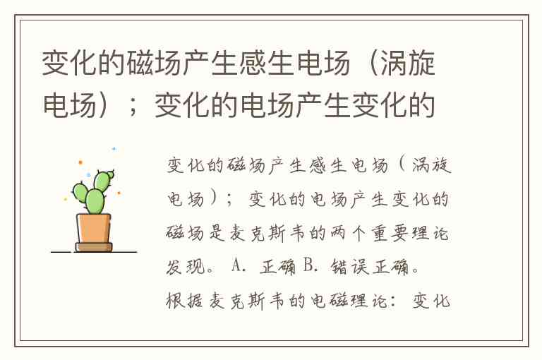 变化的磁场产生感生电场(涡旋电场);变化的电场产生变化的磁场是麦克斯韦的两个重要理论发现。 A. 正确 B. 错误
