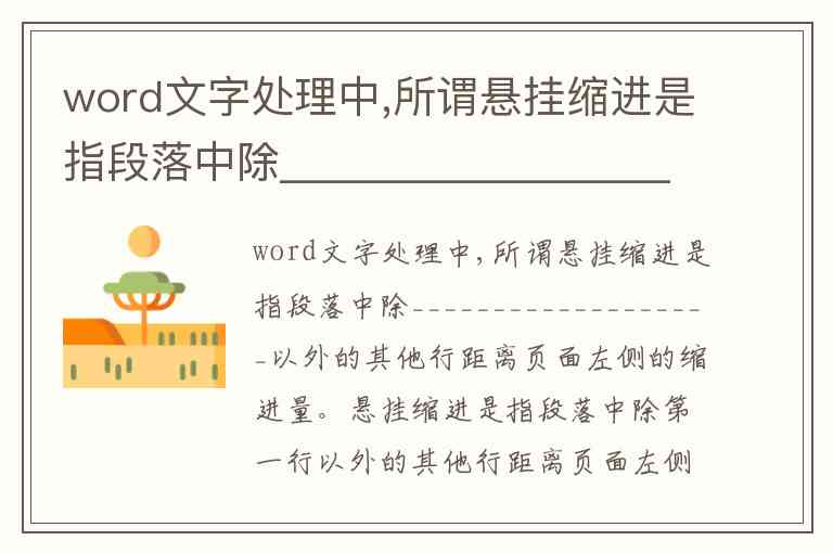 word文字处理中,所谓悬挂缩进是指段落中除___________________以外的其他行距离页面左侧的缩进量。