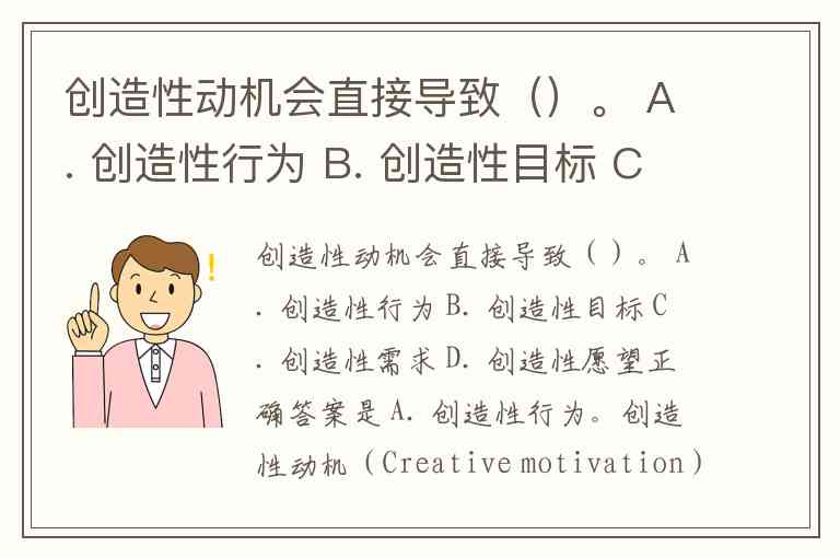 创造性动机会直接导致()。 A. 创造性行为 B. 创造性目标 C. 创造性需求 D. 创造性愿望