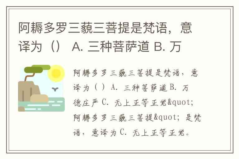 阿耨多罗三藐三菩提是梵语,意译为() A. 三种菩萨道 B. 万德庄严 C. 无上正等正觉