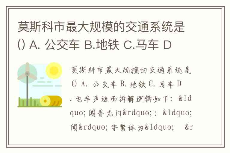 莫斯科市最大规模的交通系统是() A. 公交车 B.地铁 C.马车 D.电车