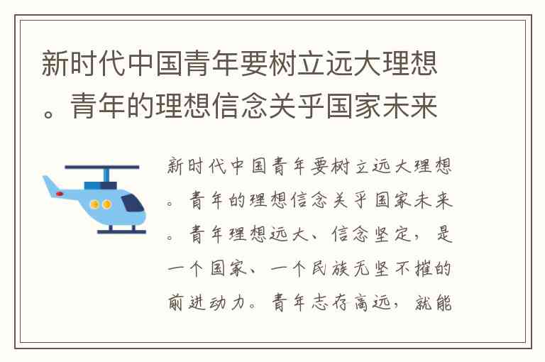 这段文字的主旨是强调青年要树立远大理想,并将个人理想与祖国的需求和人民的利益紧密结合,只有这样才能实现人生的价值和升华。基于这个核心思想,最能反映本段主旨的选项是: