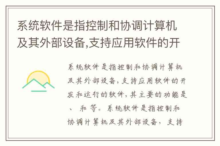 系统软件是指控制和协调计算机及其外部设备,支持应用软件的开发和运行的软件。其主要功能包括: