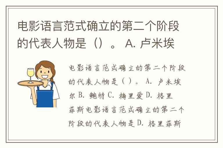 电影语言范式确立的第二个阶段的代表人物是()。 A. 卢米埃尔 B. 鲍特 C. 梅里爱 D. 格里菲斯