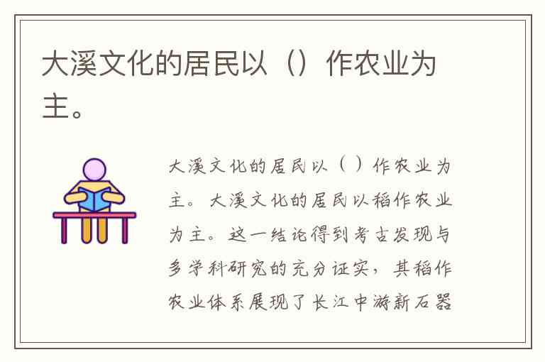 大溪文化的居民以稻作农业为主。这一结论得到考古发现与多学科研究的充分证实,其稻作农业体系展现了长江中游新石器时代独特的农耕文明特征。