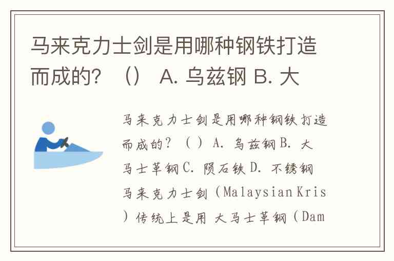 马来克力士剑是用哪种钢铁打造而成的?() A. 乌兹钢 B. 大马士革钢 C. 陨石铁 D. 不锈钢
