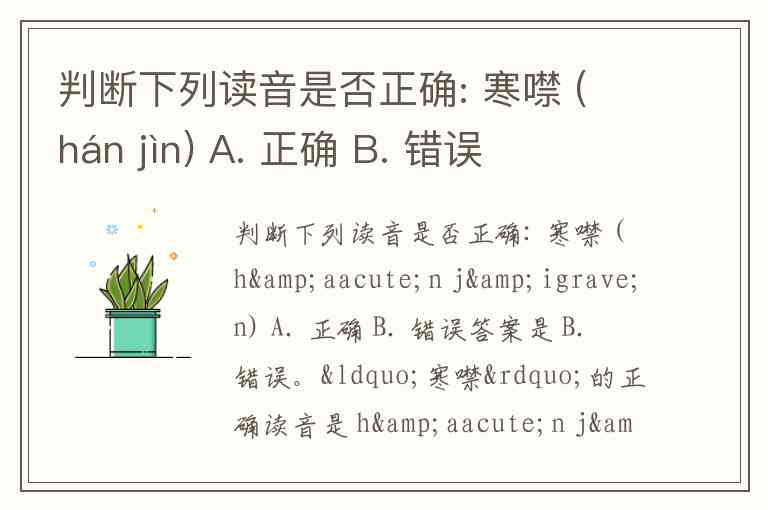 判断下列读音是否正确: 寒噤 (hán jìn) A. 正确 B. 错误