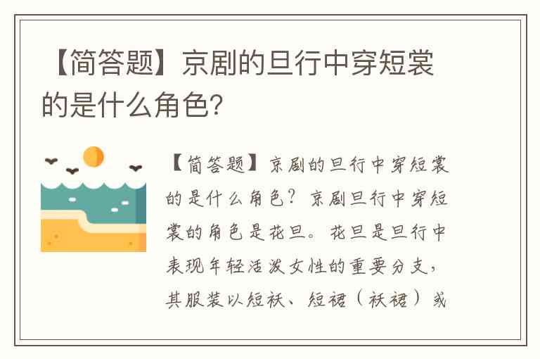 【简答题】京剧的旦行中穿短裳的是什么角色?