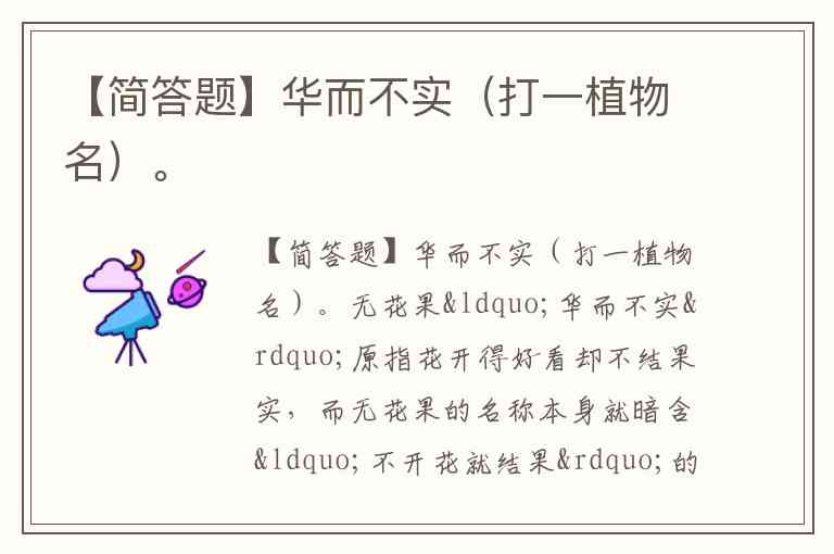 类似以植物特性扣合成语的字谜,如“月下美人”打昙花(夜间开放),“四季常青”打松树,均遵循“特征映射”逻辑。而无花果的独特之处在于,它并非直接对应成语褒贬,而是通过名称与植物学事实的“认知反差”,让谜底既在意料之外(非牡丹、玫瑰等“华而不实”的典型花卉),又在情理之中(完美契合“有实无华”的字面反转)。