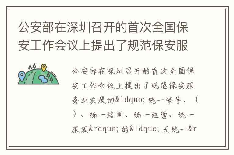 公安部在深圳召开的首次全国保安工作会议上提出了规范保安服务业发展的“统一领导、统一审批、统一培训、统一经营、统一服装”的“五统一”原则。