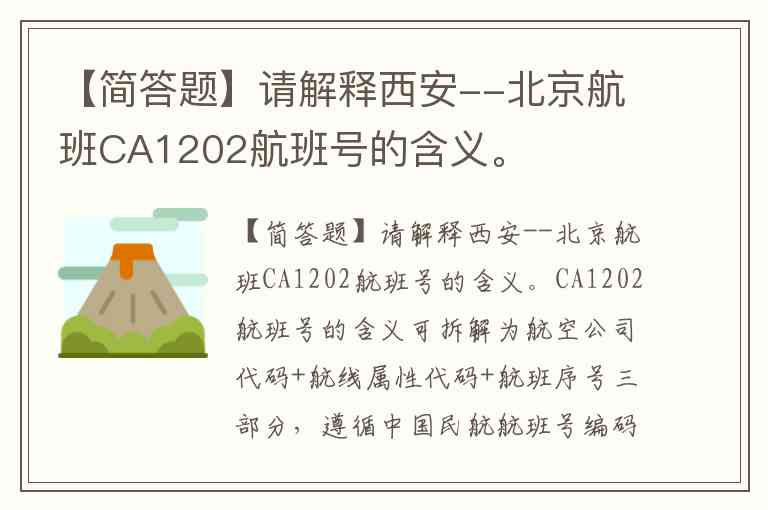 【简答题】请解释西安--北京航班CA1202航班号的含义。