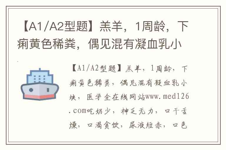 结论:综合症状、舌脉及病机分析,王某饲养羔羊的腹泻证型为大肠湿热,这一判断在执业兽医考试题库中亦有明确验证——相似病例的标准答案即为“大肠湿热”,治疗方剂选用白头翁汤。那么,在临床中若羔羊同时