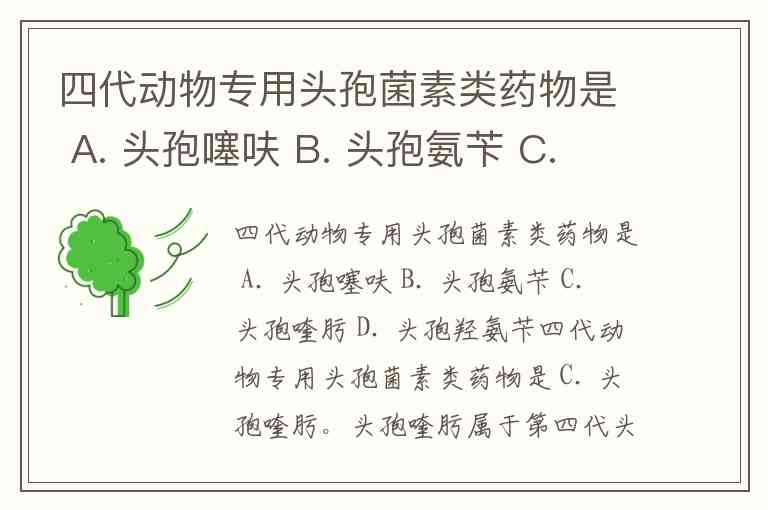 四代动物专用头孢菌素类药物是 A. 头孢噻呋 B. 头孢氨苄 C. 头孢喹肟 D. 头孢羟氨苄