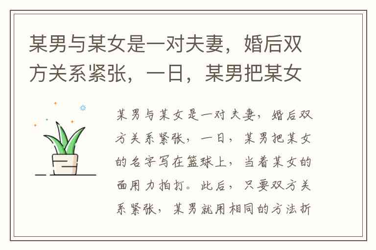 某男与某女是一对夫妻,婚后双方关系紧张,一日,某男把某女的名字写在篮球上,当着某女的面用力拍打。此后,只要双方关系紧张,某男就用相同的方法折磨某女。某男的行为属于()。