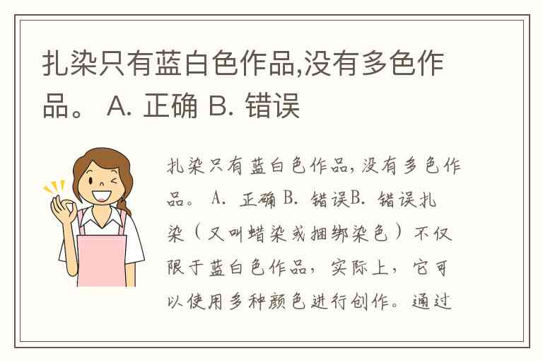 扎染只有蓝白色作品,没有多色作品。 A. 正确 B. 错误