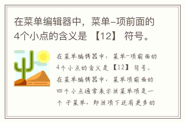 在菜单编辑器中,菜单项前面的四个小点通常表示该菜单项是一个 子菜单,即该项下还有更多的选项或内容。这四个小点通常被用作指示符,告诉用户该项下有可展开或可选择的更多操作。你提到的“【12】符号”可能是指菜单项的标记或编号,可能代表一个特定的功能或选项。