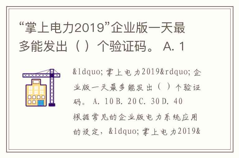 “掌上电力2019”企业版一天最多能发出( )个验证码。 A. 10 B. 20 C. 30 D. 40