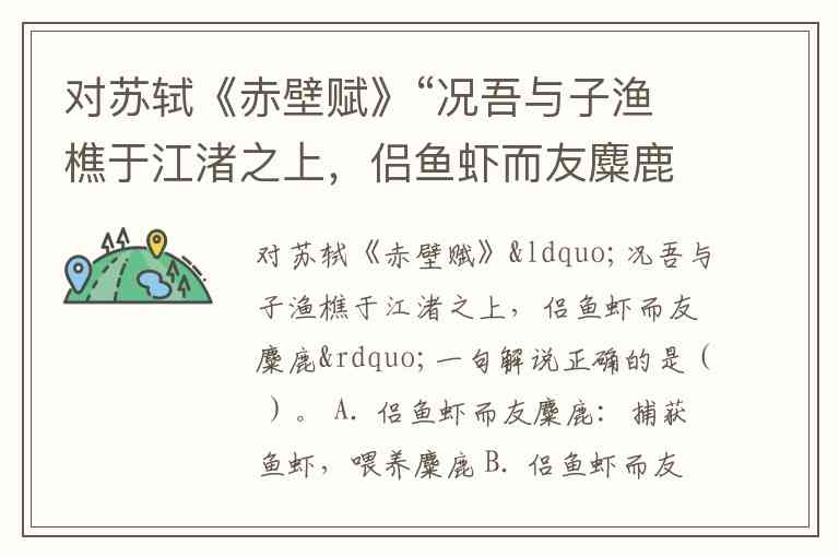 这句出自苏轼的《赤壁赋》,意思是“我和你一起在江边钓鱼、砍柴,和鱼虾为伴,和麋鹿为友”,其中“侣”和“友”指的是与自然界中的动物建立友好的关系,并非字面上的捕捉或喂养。