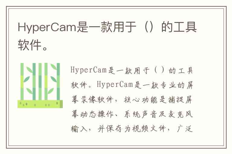 HyperCam是一款专业的屏幕录像软件,核心功能是捕捉屏幕动态操作、系统声音及麦克风输入,并保存为视频文件,广泛用于制作教学课程、软件演示和网络教学视频。