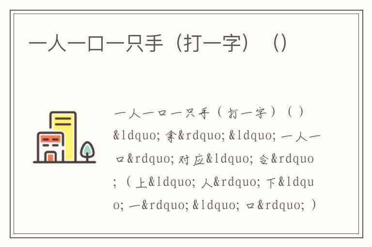 一人一口一只手(打一字)()