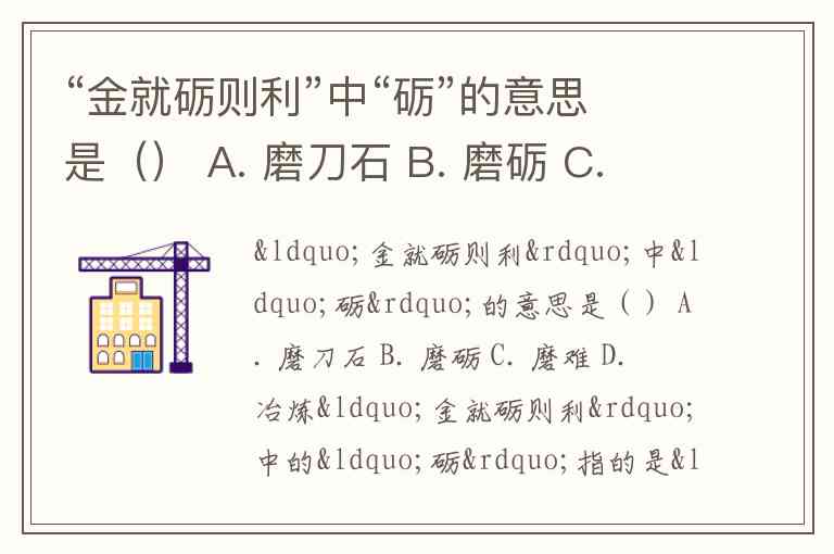 “金就砺则利”中“砺”的意思是() A. 磨刀石 B. 磨砺 C. 磨难 D. 冶炼