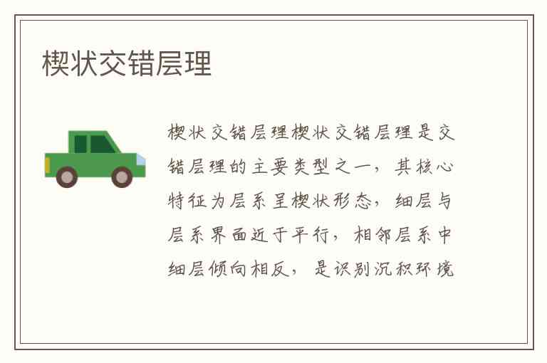 楔状交错层理是交错层理的主要类型之一,其核心特征为层系呈楔状形态,细层与层系界面近于平行,相邻层系中细层倾向相反,是识别沉积环境的重要标志。