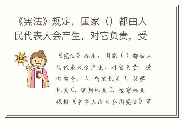 《宪法》规定,国家()都由人民代表大会产生,对它负责,受它监督。 A. 行政机关 B. 监察机关 C. 审判机关 D. 检察机关
