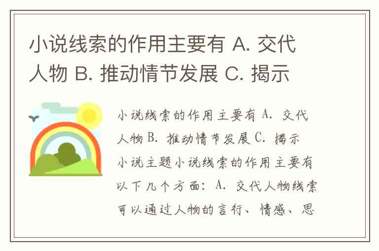 小说线索的作用主要有 A. 交代人物 B. 推动情节发展 C. 揭示小说主题