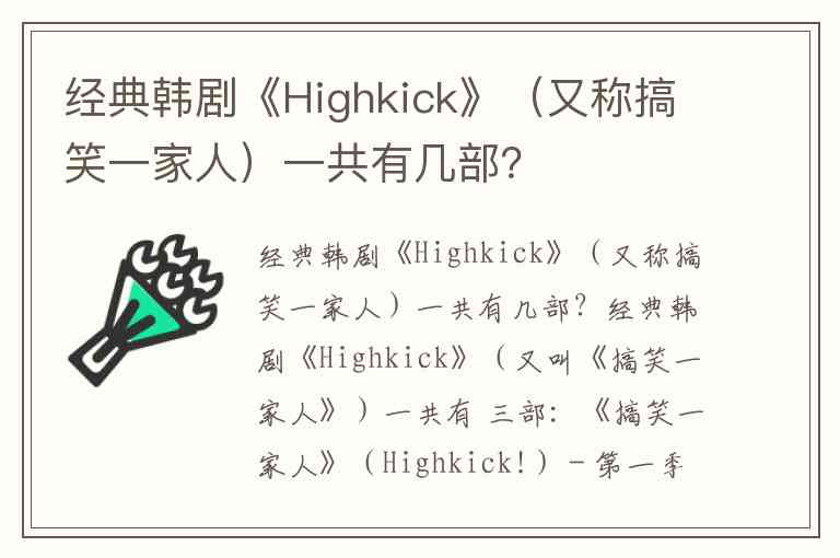 经典韩剧《Highkick》(又叫《搞笑一家人》)一共有 三部: