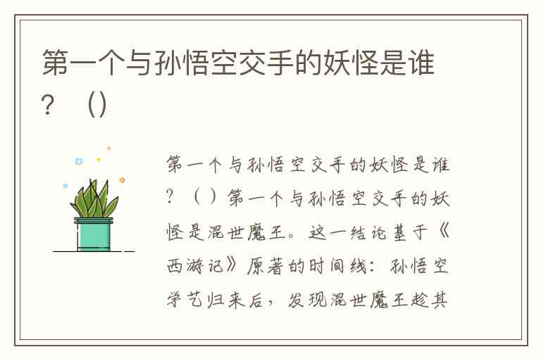 这一结论基于《西游记》原著的时间线:孙悟空学艺归来后,发现混世魔王趁其不在霸占花果山、杀害猴群,遂前往坎源山水脏洞与之交战。此怪身高三丈,头戴乌金盔、手持大刀,是唯一一个敢直接入侵花果山的妖怪,最终被孙悟空“照顶门一棒,打成肉酱”。从叙事逻辑看,这是孙悟空独立运用菩提祖师所授武艺的首战,标志着他从“学艺者”到“护山领袖”的转变,正如文档所述,混世魔王是“西游新手村副本的boss”。