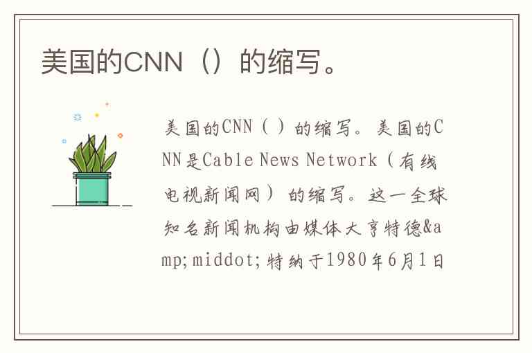 美国的CNN是Cable News Network(有线电视新闻网) 的缩写。