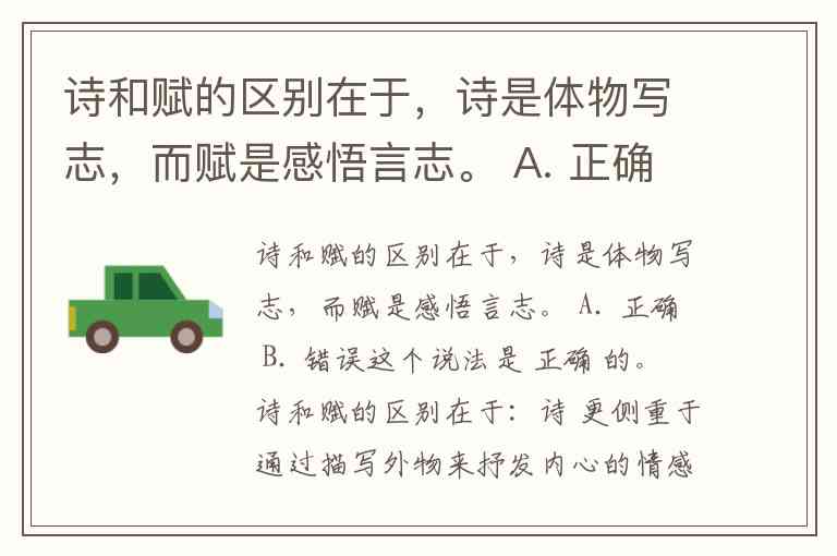 诗和赋的区别在于,诗是体物写志,而赋是感悟言志。 A. 正确 B. 错误