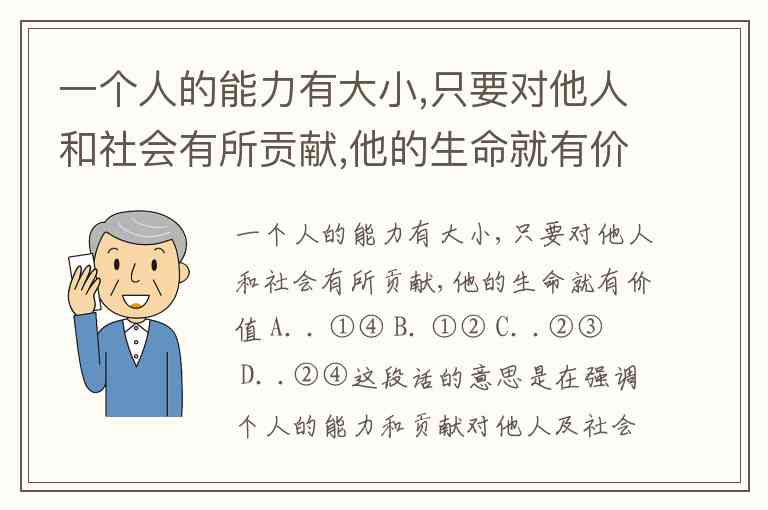 这段话的意思是在强调个人的能力和贡献对他人及社会的重要性。你给出的选项似乎是某种题目的答案,但我需要更多的背景信息才能准确解答。能否提供一下这段话对应的具体问题或者选项的内容?