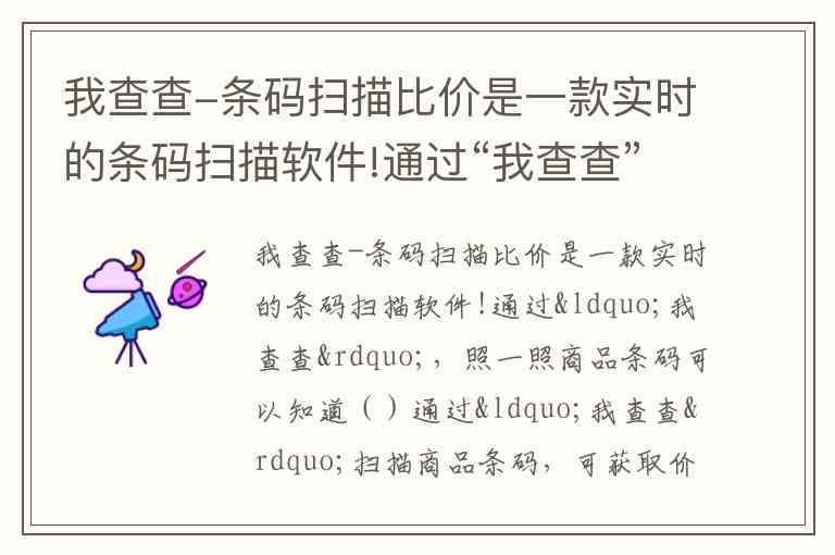 我查查-条码扫描比价是一款实时的条码扫描软件!通过“我查查”,照一照商品条码可以知道()
