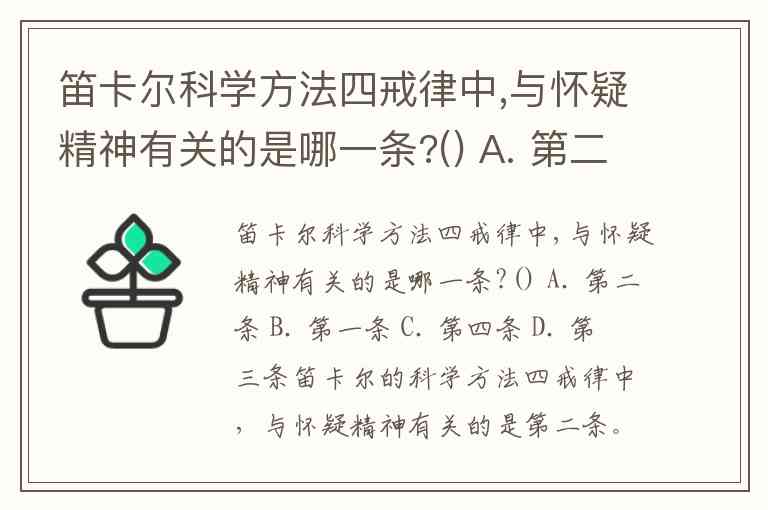 笛卡尔科学方法四戒律中,与怀疑精神有关的是哪一条?() A. 第二条 B. 第一条 C. 第四条 D. 第三条