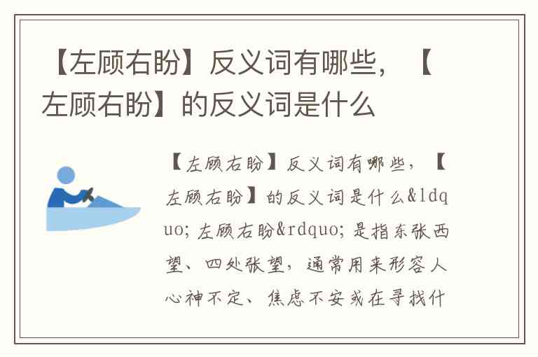 因此,**“左顾右盼”**的反义词可以是: