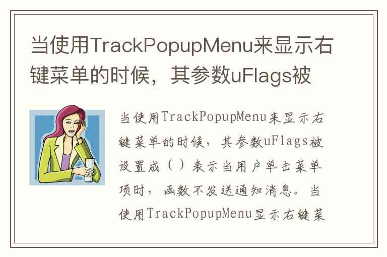 当使用TrackPopupMenu来显示右键菜单的时候,其参数uFlags被设置成()表示当用户单击菜单项时,函数不发送通知消息。