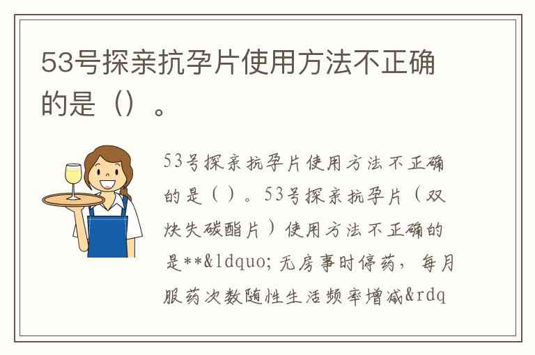 53号探亲抗孕片(双炔失碳酯片)使用方法不正确的是**“无房事时停药,每月服药次数随性生活频率增减”**。