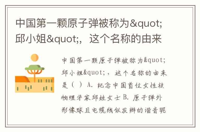 A. 纪念中国首位女性核物理学家邱姓女士:中国核武器研制队伍中虽有杰出的女性科学家,但“邱小姐”代号并非为纪念某位特定人物而设。