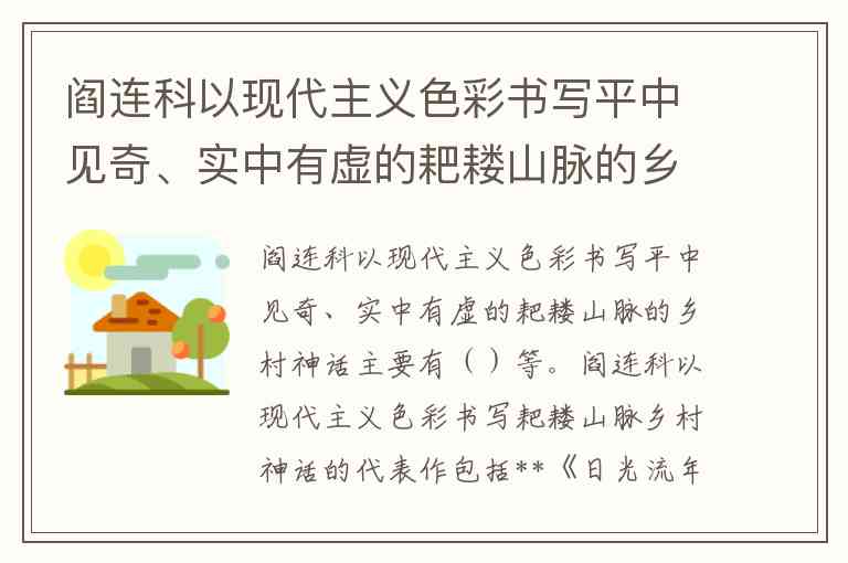 阎连科以现代主义色彩书写耙耧山脉乡村神话的代表作包括**《日光流年》《年月日》《耙耧天歌》《黄金洞》**,这些作品构建了一个充满苦难与抗争的“耙耧世界”,通过身体叙事与生存悖论展现东方化存在主义哲思。