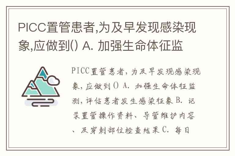 针对PICC(外周插管中心静脉导管)置管患者,为了及早发现感染现象,应该做到以下几点: