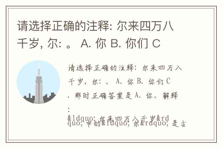 请选择正确的注释: 尔来四万八千岁, 尔: 。 A. 你 B. 你们 C. 那时
