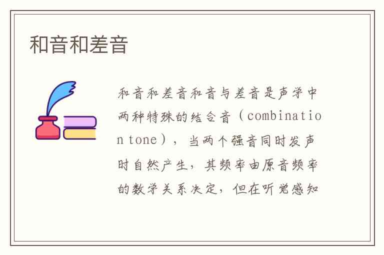 和音与差音是声学中两种特殊的结合音(combination tone),当两个强音同时发声时自然产生,其频率由原音频率的数学关系决定,但在听觉感知和实际应用中差异显著。