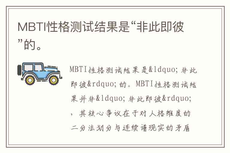 MBTI性格测试结果并非“非此即彼”,其核心争议在于对人格维度的二分法划分与连续谱现实的矛盾。