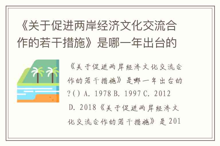 《关于促进两岸经济文化交流合作的若干措施》是哪一年出台的?( ) A. 1978 B. 1997 C. 2012 D. 2018