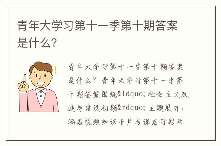 青年大学习第十一季第十期答案围绕“社会主义改造与建设初期”主题展开,涵盖视频知识卡片与课后习题两部分,具体答案及解析如下: