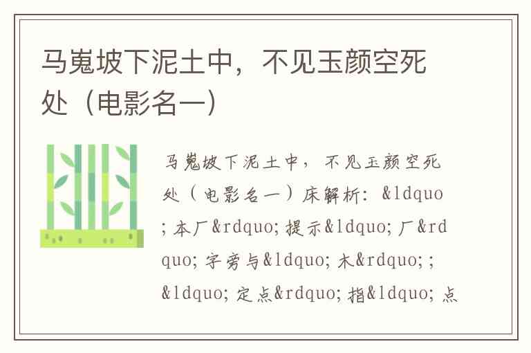 马嵬坡下泥土中,不见玉颜空死处(电影名一)