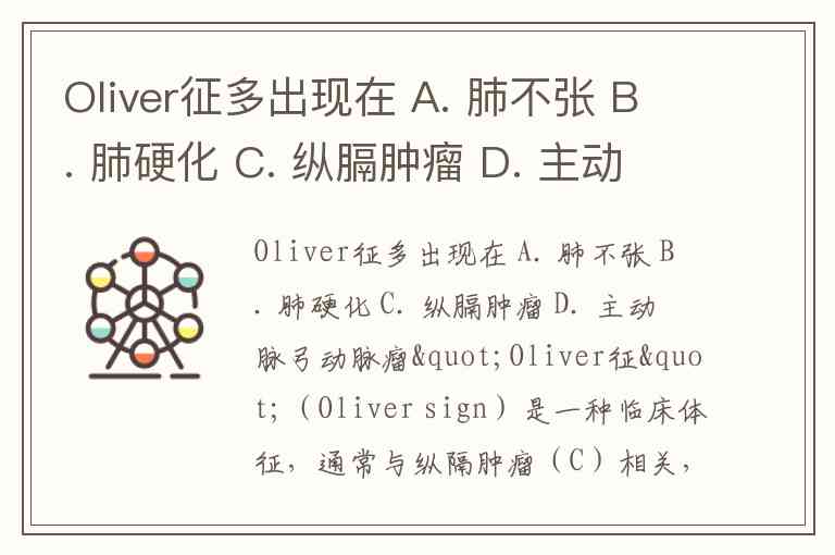 C. 纵隔肿瘤:Oliver征表现为气管受压或扭曲,常见于纵隔肿瘤,尤其是当肿瘤压迫气管时,可能导致典型的体征。