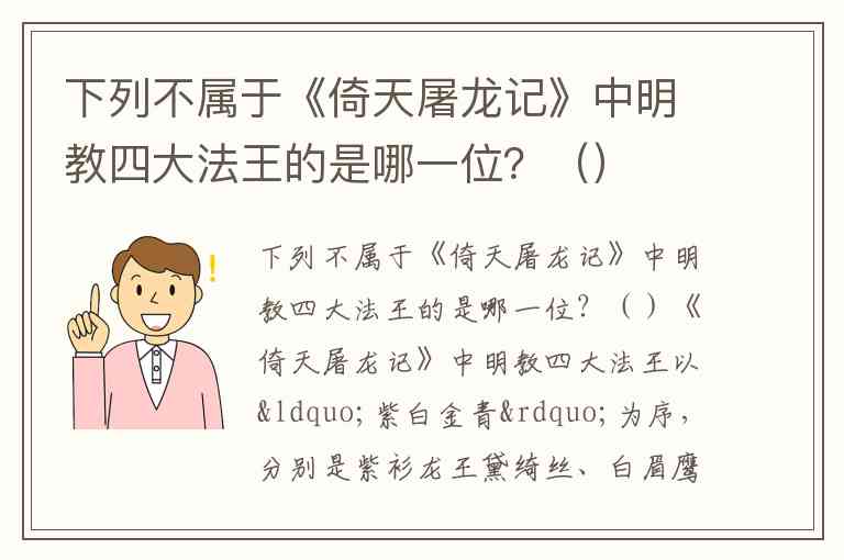 下列不属于《倚天屠龙记》中明教四大法王的是哪一位?()